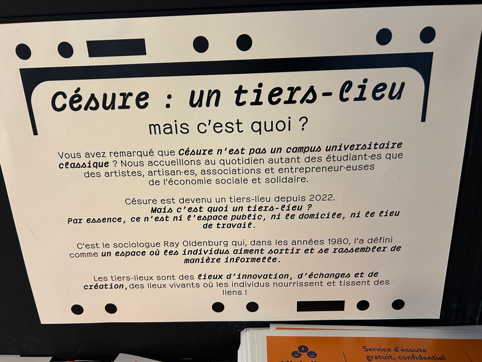 👀 👉Les élèves seront amenés à  visiter  Césure et à comprendre ce qu’est un tiers lieu et échanger avec différents porteurs de projet de l’Économie Sociale et Solidaire. De multiples projets peuvent être co créer avec Hors les murs sur Césure en fonction des objectifs pédagogiques des enseignant.es.